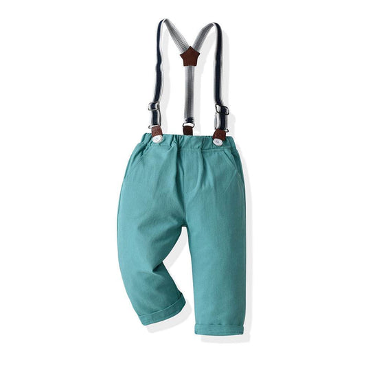 Handsome Floral Printed Long Sleeve with Suspender Suit and Bow Tie