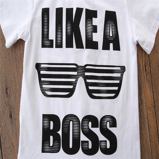 Kids Short Sleeve Letter Boss T-shirt Denim Shorts Two-Piece Set