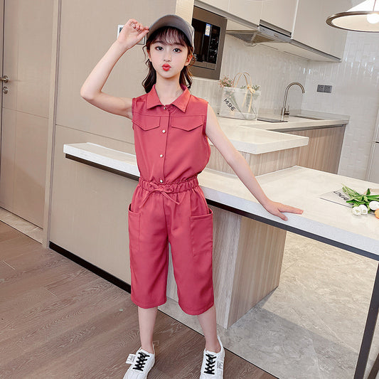 Loose Style Floral Girls Cotton Romper Wide-Leg Pants