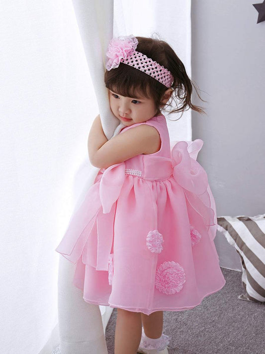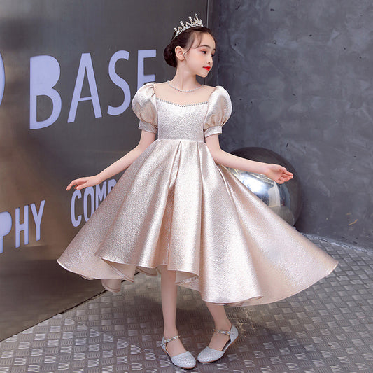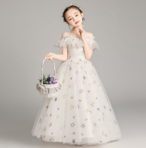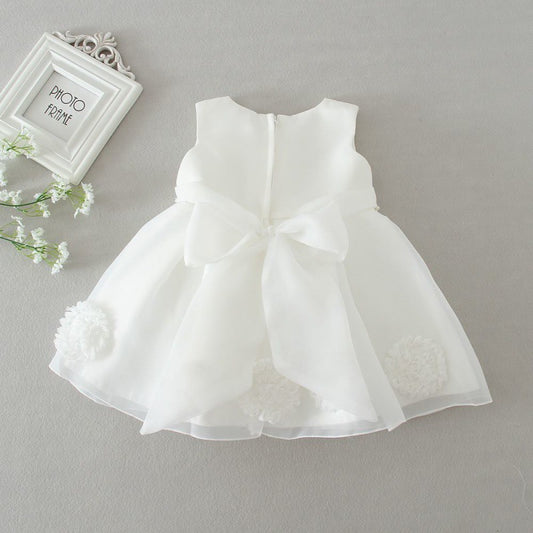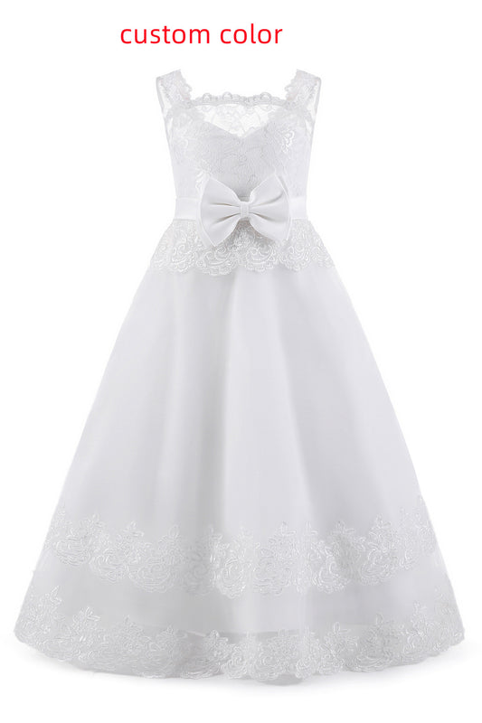 Girls Vested Sleeve Solid Color Princess Pageant Dress