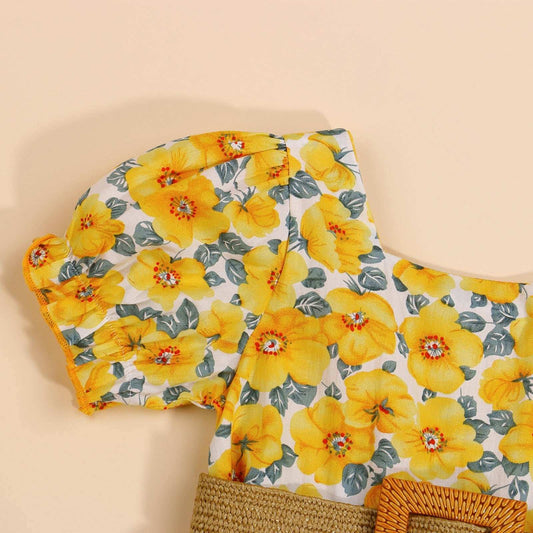 Baby Girls Floral Casual Dress With Mid waist Brown Belt