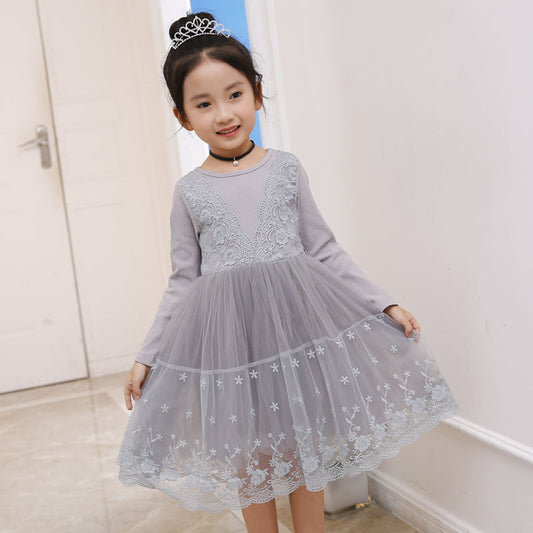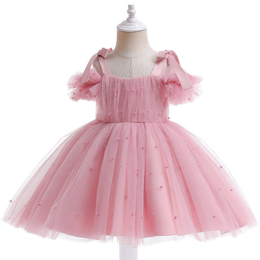 Girls Lace-up Pearl Mesh Pettiskirt Dress